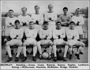 Bromley were reigning FA Amateur Cup holders. They had just beaten Romford at Wembley – the first final to be held there – watched by more than 93,000 spectators. A talented team included internationals Ken Yenson and Charlie Fuller; half-back Eric Fright played for the Great Britain Olympic squad, as did Tommy Hopper. Prolific striker George Brown scored 129 times that season.