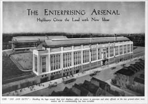 There seemed no end to Chapman’s creativity. He introduced a controversial forty-five minute clock, numbers on shirts, experimental floodlighting and even had London Underground rebadge Gillespie Road station as Arsenal (Highbury Hill). This quietly suburban stop featured attractive red-brick Leslie Green detailing; it was nevertheless demolished so that more supporters could be accommodated on matchdays.