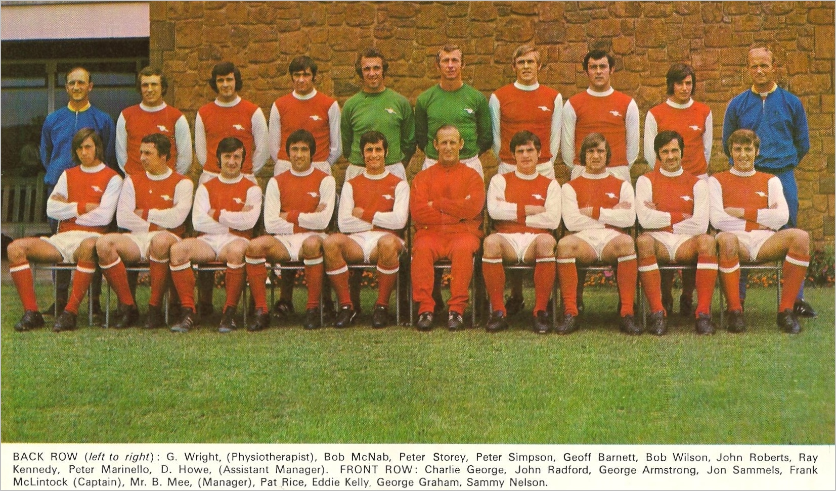 This achievement capped six years’ steady progress. Mee had revitalised Arsenal, successfully partnering military-grade administrative skills with coach Don Howe’s more modern methods. Experienced signings – Bob Wilson, Bob McNab, George Graham, George Armstrong, Frank McLintock – perfectly complemented the homegrown talent of Ray Kennedy, Charlie George, Pat Rice, Peter Simpson, John Radford and Eddie Kelly.